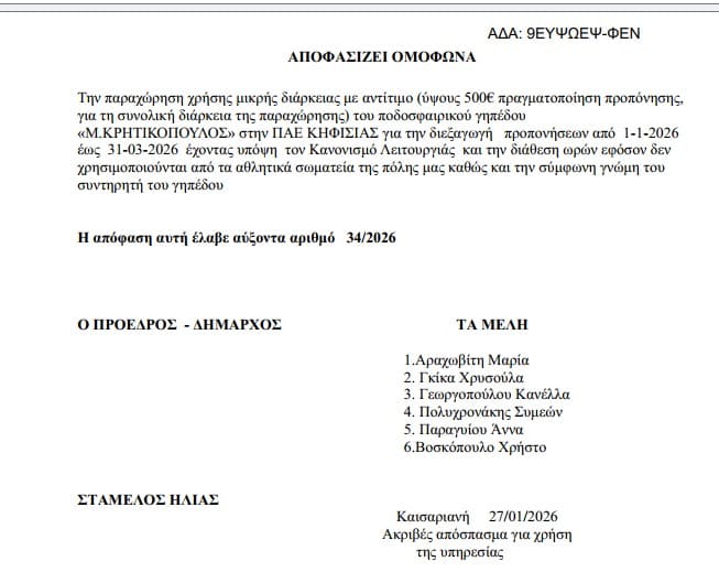 Παράλληλα, η διοίκηση επισημαίνει ότι η χρήση του χώρου από τον συγκεκριμένο σύλλογο δεν είναι κάτι νέο, αλλά προϋπήρχε εδώ και χρόνια, χωρίς όμως σαφείς υποχρεώσεις. Η νέα συμφωνία θέτει κανόνες και ανταποδοτικότητα, καθώς ένα ακόμη γήπεδο θα ανακατασκευαστεί από τον Σύλλογο αμιγώς για χρήση από τον Δήμο.