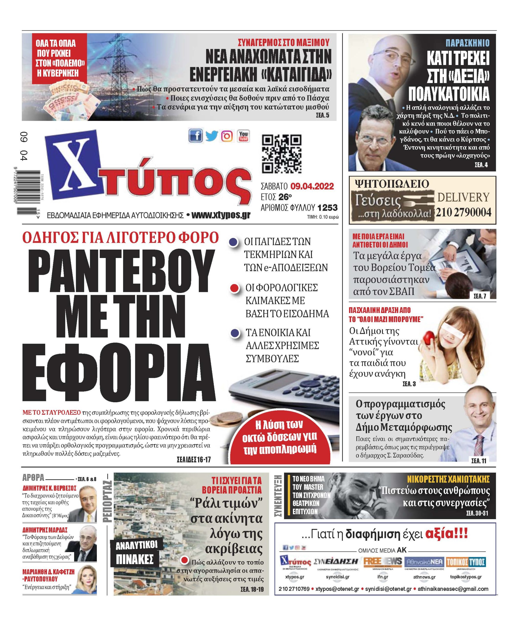 “Πρωτοσέλιδο εφημερίδας «ΧΤΥΠΟΣ» Σάββατο 9 Απριλίου 2022”