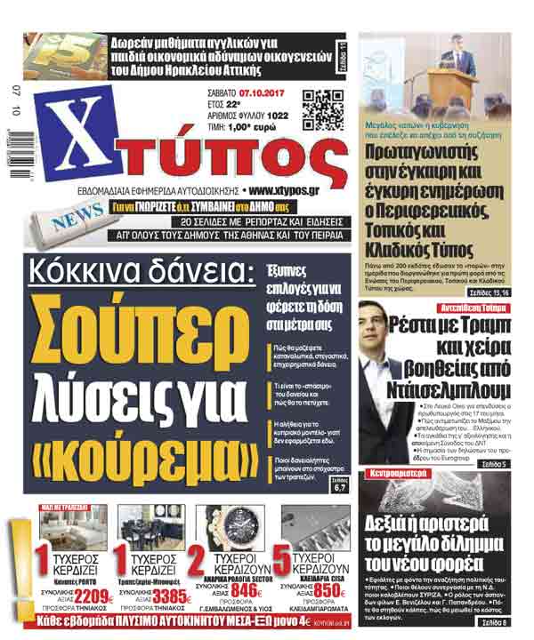 Πρωτοσέλιδο «ΧΤΥΠΟΣ» Σαββάτου 07-10-2017