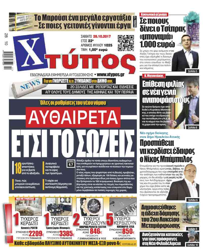 Πρωτοσέλιδο «ΧΤΥΠΟΣ» Σαββάτου 28-10-2017