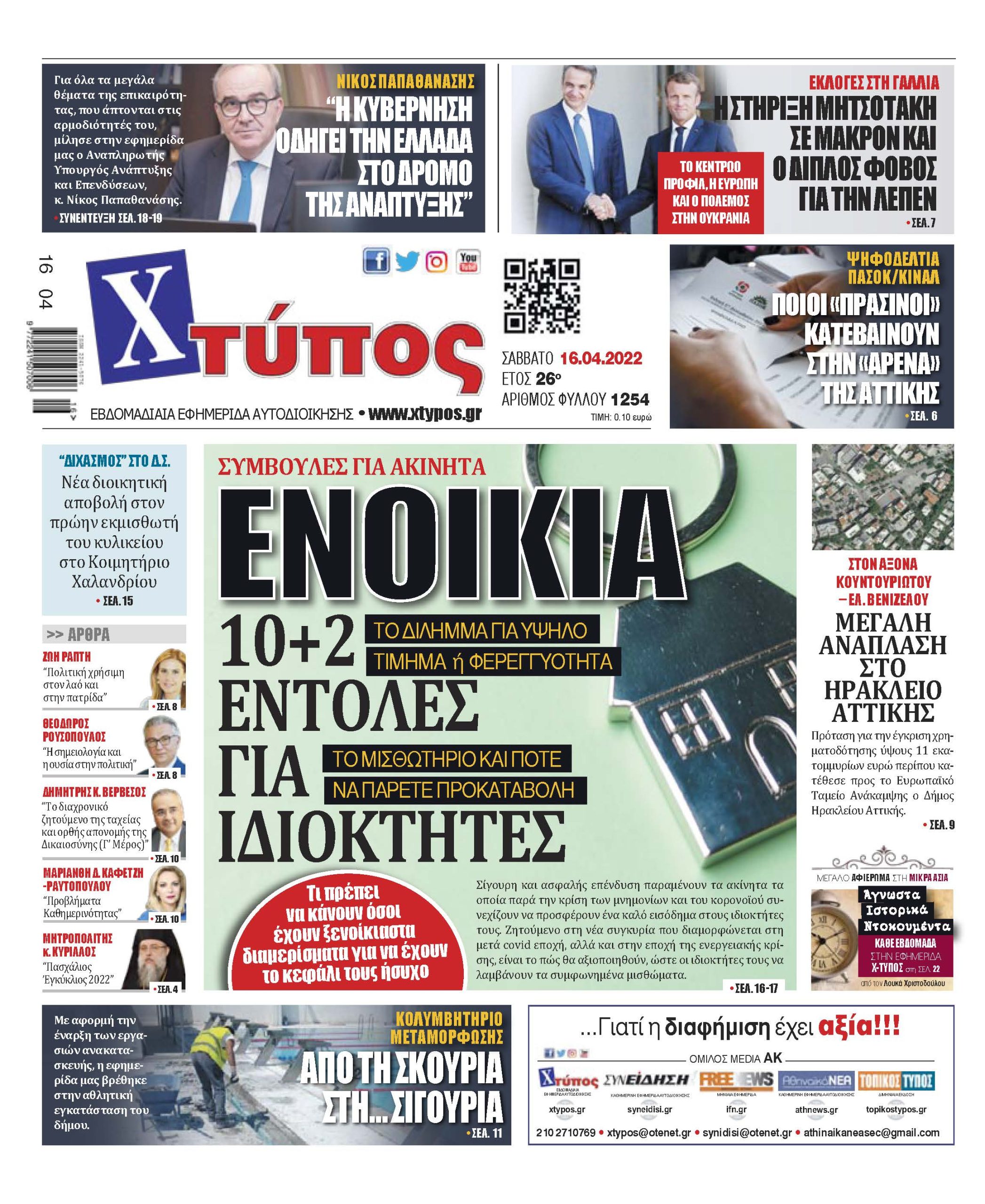 “Πρωτοσέλιδο εφημερίδας «ΧΤΥΠΟΣ» Σάββατο 16 Απριλίου 2022”