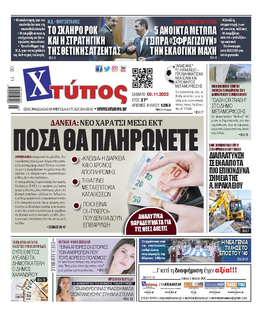 “Πρωτοσέλιδο εφημερίδας «ΧΤΥΠΟΣ» Σάββατο 5 Νοεμβρίου 2022”
