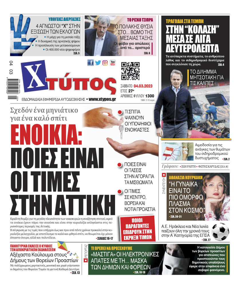 “Πρωτοσέλιδο της εφημερίδας «ΧΤΥΠΟΣ» Σάββατο 4 Μαρτίου 2023”