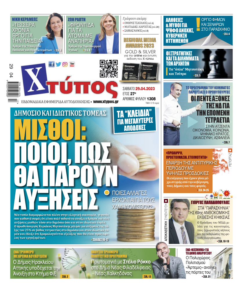 “Πρωτοσέλιδο της εφημερίδας «ΧΤΥΠΟΣ» Σάββατο 29 Απριλίου 2023”