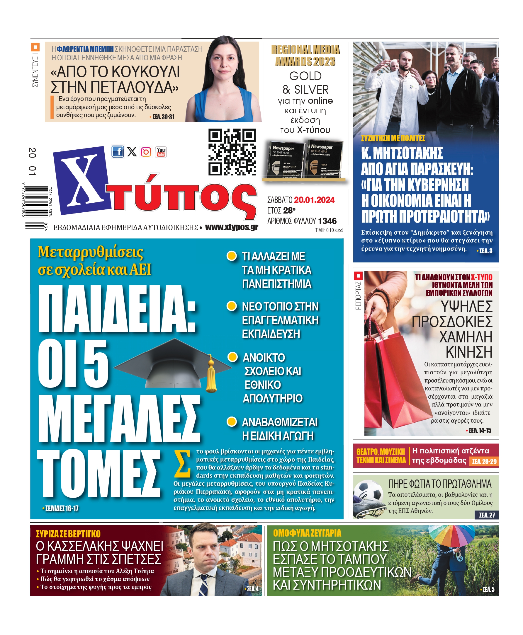 “Πρωτοσέλιδο της εφημερίδας «ΧΤΥΠΟΣ» Σάββατο 20 Ιανουαρίου 2024”