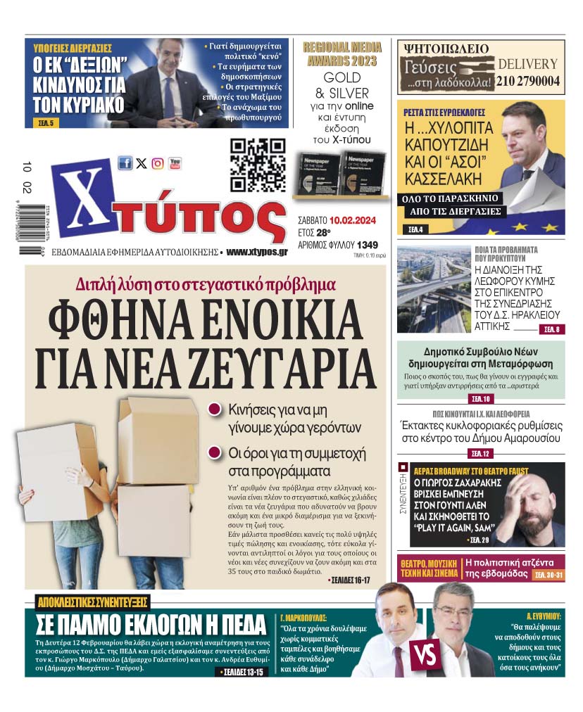 “Πρωτοσέλιδο της εφημερίδας «ΧΤΥΠΟΣ» Σάββατο 10 Φεβρουαρίου 2024”