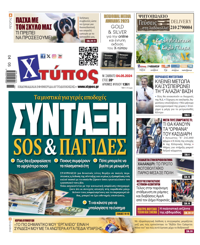 “Πρωτοσέλιδο της εφημερίδας «ΧΤΥΠΟΣ» Μ. Σάββατο 4 Μαΐου 2024”