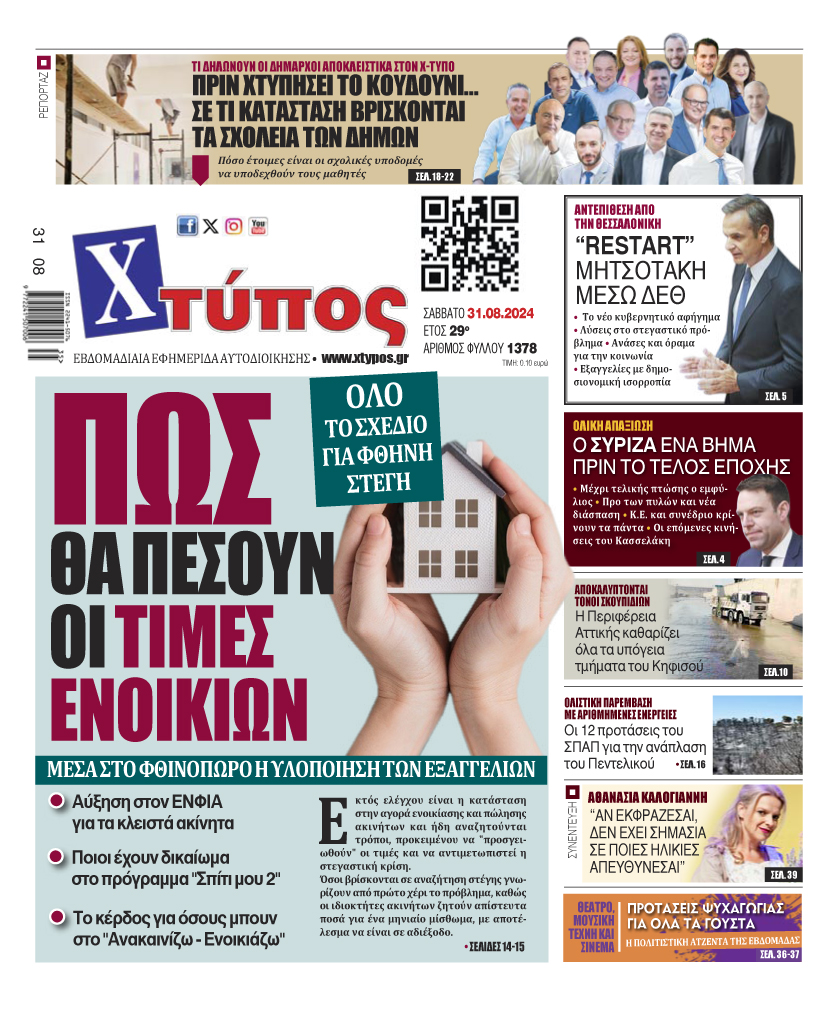 “Πρωτοσέλιδο της εφημερίδας «ΧΤΥΠΟΣ» Σάββατο 31 Αυγούστου 2024”