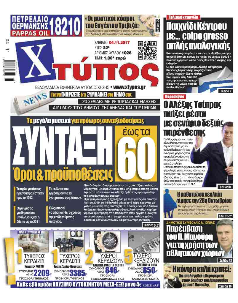 Πρωτοσέλιδο “ΧΤΥΠΟΣ” Σαββάτου 4 Νοεμβρίου 2017
