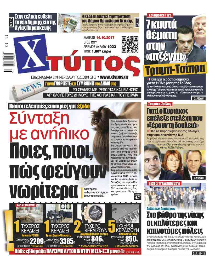Πρωτοσέλιδο «ΧΤΥΠΟΣ» Σαββάτου 14-10-2017