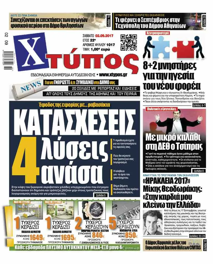 Πρωτοσέλιδο Χτύπος 2-9-2017
